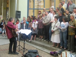 Image: Ruth singing with Polysons, a choir she joined while working in rural France.